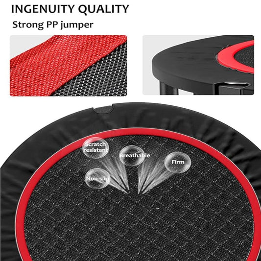 Silent Foldable Trampoline 40/48 Inch Adults Kid With Armrest Adjustable Handle Home Gym Jumping Fitness