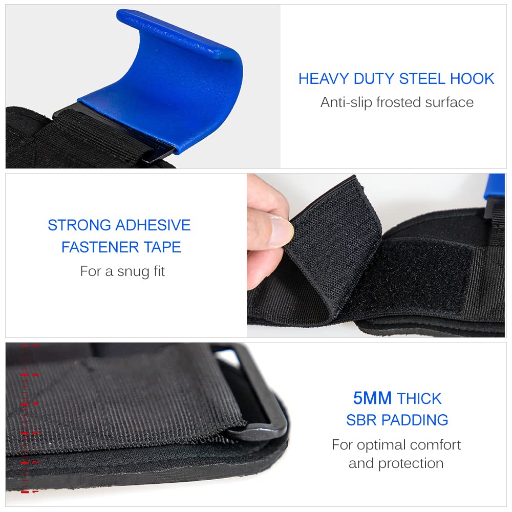 - Feature : Secure hand support, comfort-fit lifting hooks grips, Portable , Odorless, and the wrist strap is firm and durable.